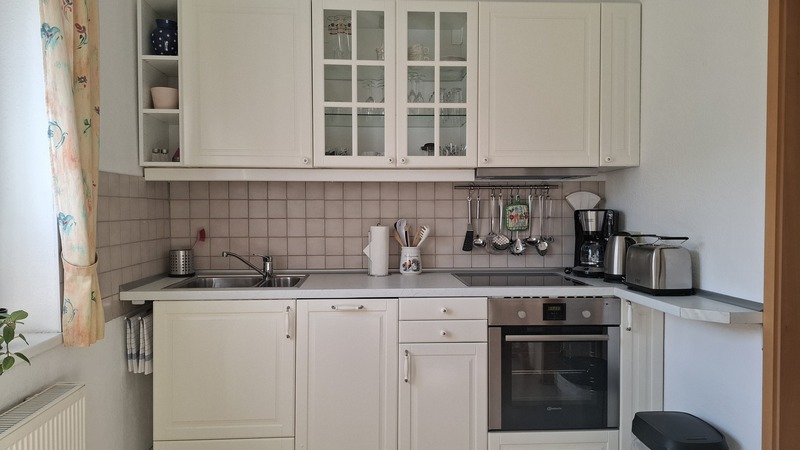 Die Küche ist voll ausgestattet, mit neuesten Geräten, wie Geschirrspüler, Herd mit Grillfunktion und Ceranfeld, Wasserkocher, Toaster, Kaffeemaschine und weiteren Küchenutensilien.