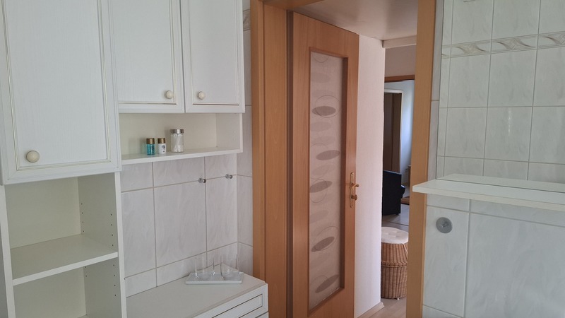 Der Esstisch in der Küche bietet Platz für max. 4 Personen, welcher ebenfalls als Arbeitsplatz dienen kann.