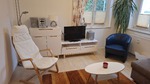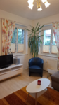 Es besteht aus einem hell und freundlich eingerichteten Wohn- und Schlafzimmer, einem Durchgangszimmer (Aufbettung möglich), einer Küche, einem Flur mit Garderobe, sowie einem hochwertig gestaltetem